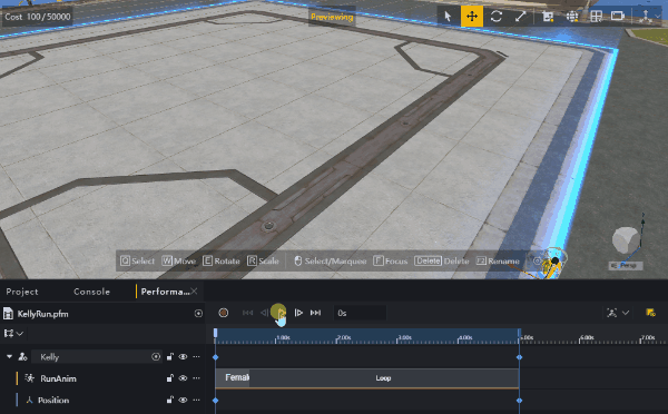Next, we’ll use the example “Have Kelly run 50 meters along the X-axis in 5 seconds” to demonstrate the basic operations of the performance system.
