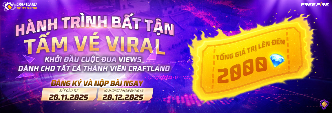 💥 Tấm Vé Viral – Chuỗi sự kiện hoành tráng nhất cuối năm dành riêng cho cộng đồng các nhà sáng tạo nội dung Craftland đã chính thức khởi động! Đừng bỏ lỡ cơ hội để tên tuổi và kênh của bạn được biết đến rộng rãi, với sự đồng hành đặc biệt của Bảo Zui Zẻ!